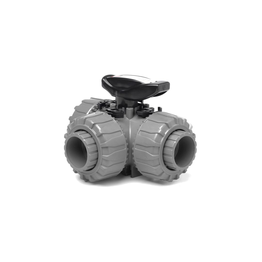 The Durapipe TKD 3 Way PVC Metric Solvent Socket Ball Valve is designed for installation in piping systems, suitable for water and non-hazardous media; corrosive, inert, gaseous and liquid media which have no negative impact on the physical and chemical properties of the body and seal material.